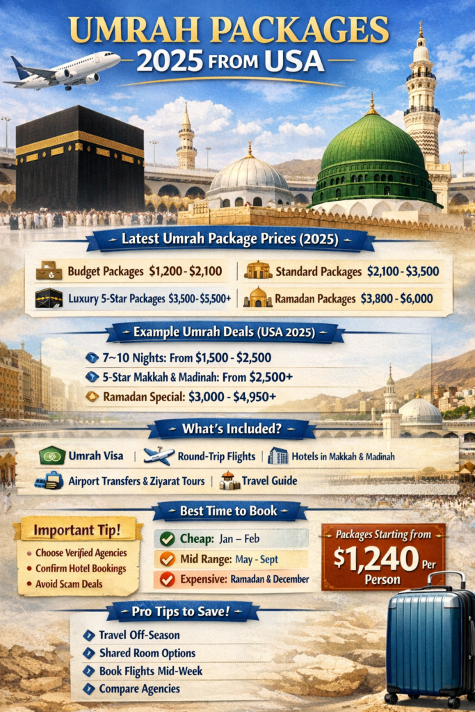 Planning your 2026 Umrah journey from the USA requires careful research and selecting the right package that matches your budget, comfort level, and spiritual goals. Whether you’re traveling alone, with family, or in a group, understanding the different options will help you make a smart decision and enjoy a stress-free pilgrimage to Masjid al-Haram and […]